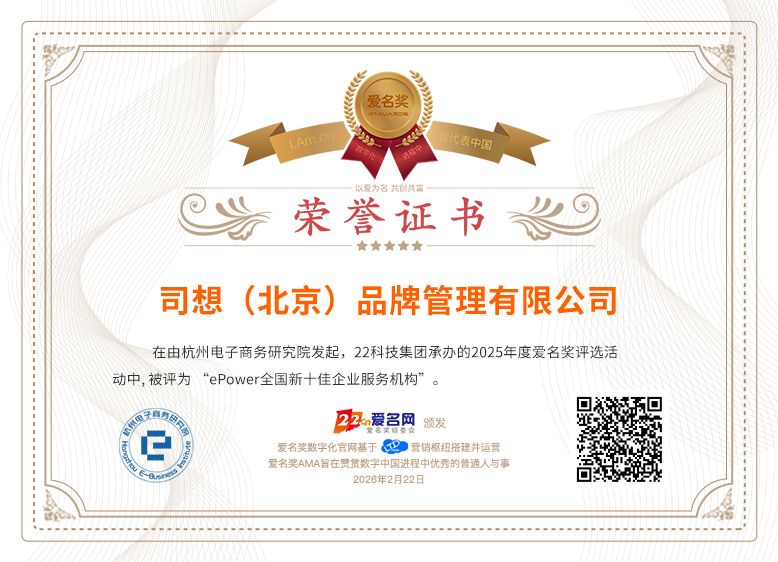 当前位置:爱名奖 > ePower全国新十佳企业服务机构获奖名单>司想(北京)品牌管理有限公司