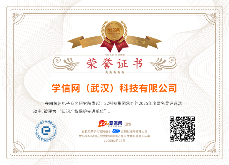 当前位置:爱名奖 > 2025年度知识产权保护先进单位获奖名单>学信网(武汉)科技有限公司