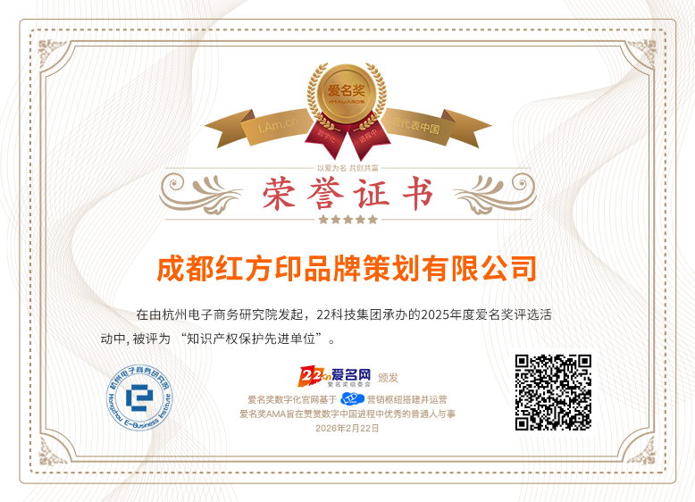 当前位置:爱名奖 > 2025年度知识产权保护先进单位获奖名单>成都红方印品牌策划有限公司