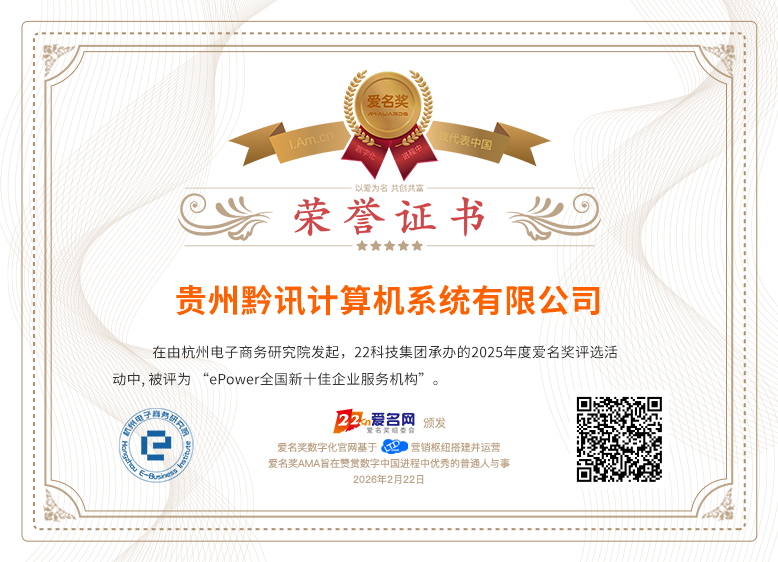 当前位置:爱名奖 > ePower全国新十佳企业服务机构获奖名单>贵州黔讯计算机系统有限公司